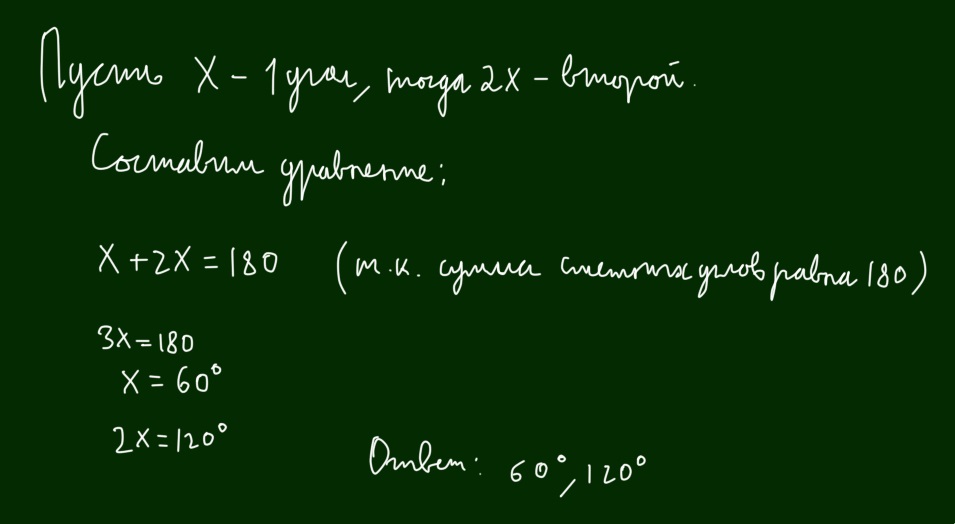 Т.е один угол равен 60 градусам а второй 120 градусам