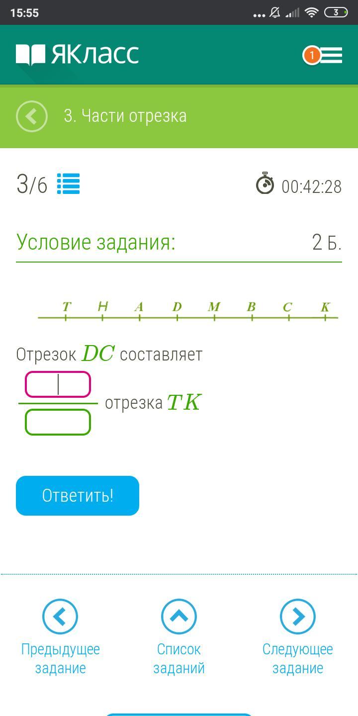 1/2 всего 8 частей, а отрезок DC составляет 4 части поэтому 1/2