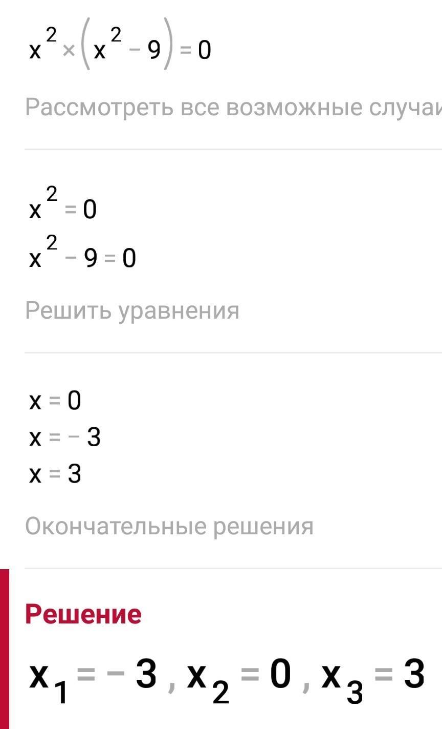 Уравнение имеет 3 корня: x=0, x=3 и x=-3.