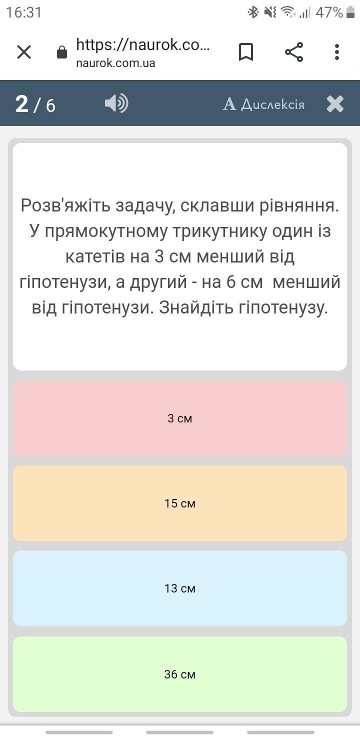 x2=3, если гипотенуза 15см, то 1 катет=15-3=12см, а второй 15-6=9см. Х=3 не удовлетворяет, так как катеты получаться отрицательные!