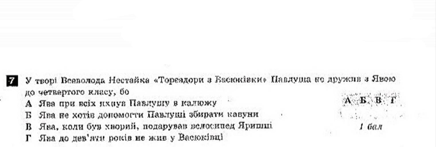 "До четвертого класу я з ним не дружив.Він був уредний.Так я вважав.Бо він мене при всіх у калюжу пхнув, як я його картуза на вербу закинув. А я був у новісіньких шевйотових штанях. Мені мама тільки вранці у раймазі купила. І тими новісінькими штаньми я у самісіньке рідке багно сів. І Ганька Гребенючка так сміялася, так сміялася, що в неї аж булька з носа вискочила."