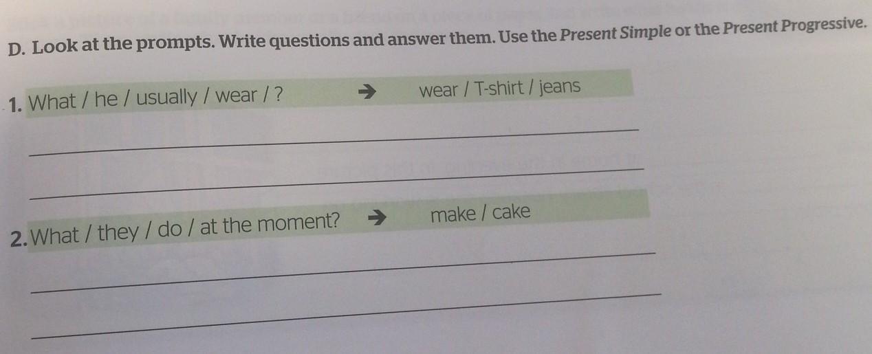 1. What / he / usually / wear / ? → wear / T-shirt / jeans