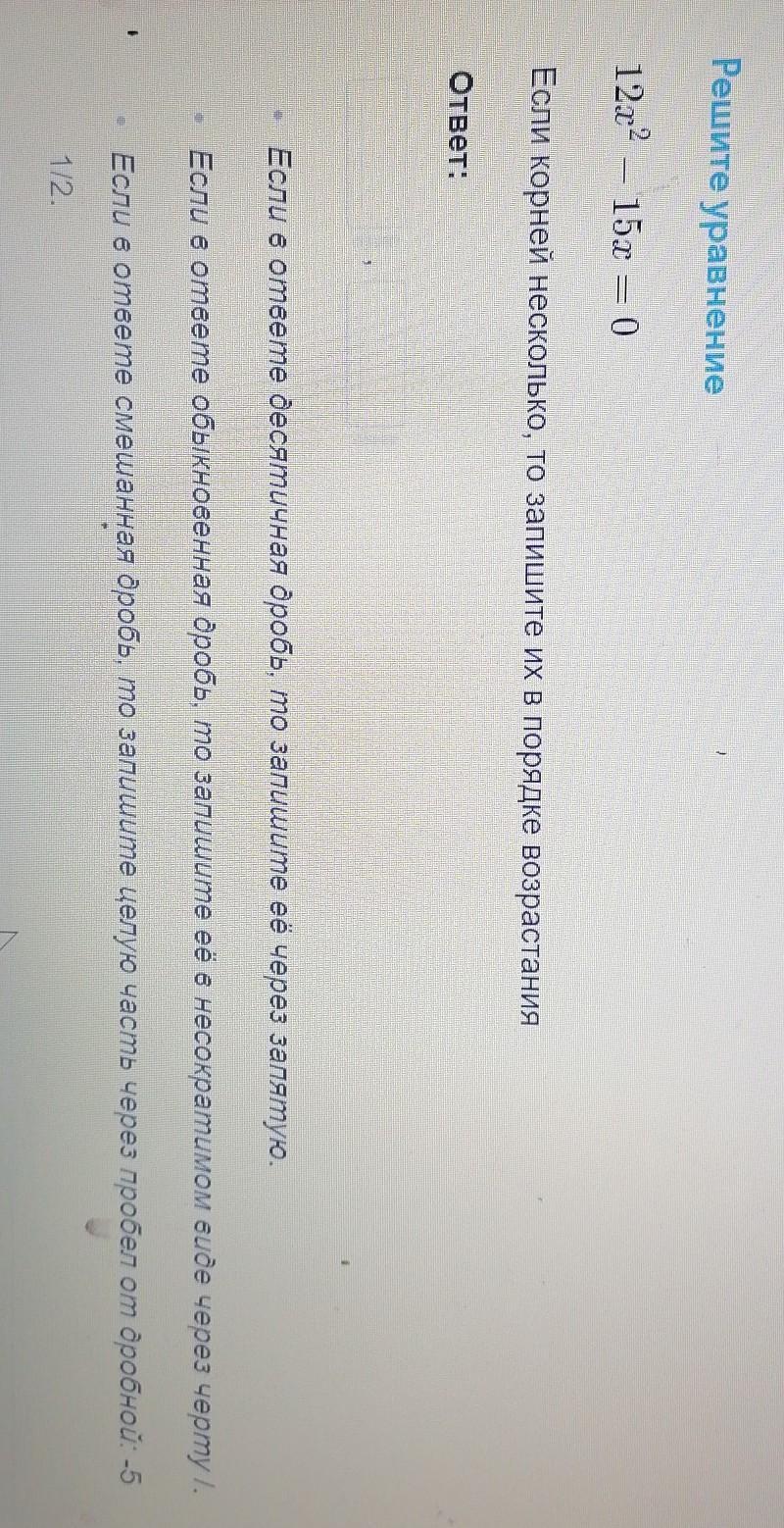 =х(12х-15)=0 х=0 или 12х=15