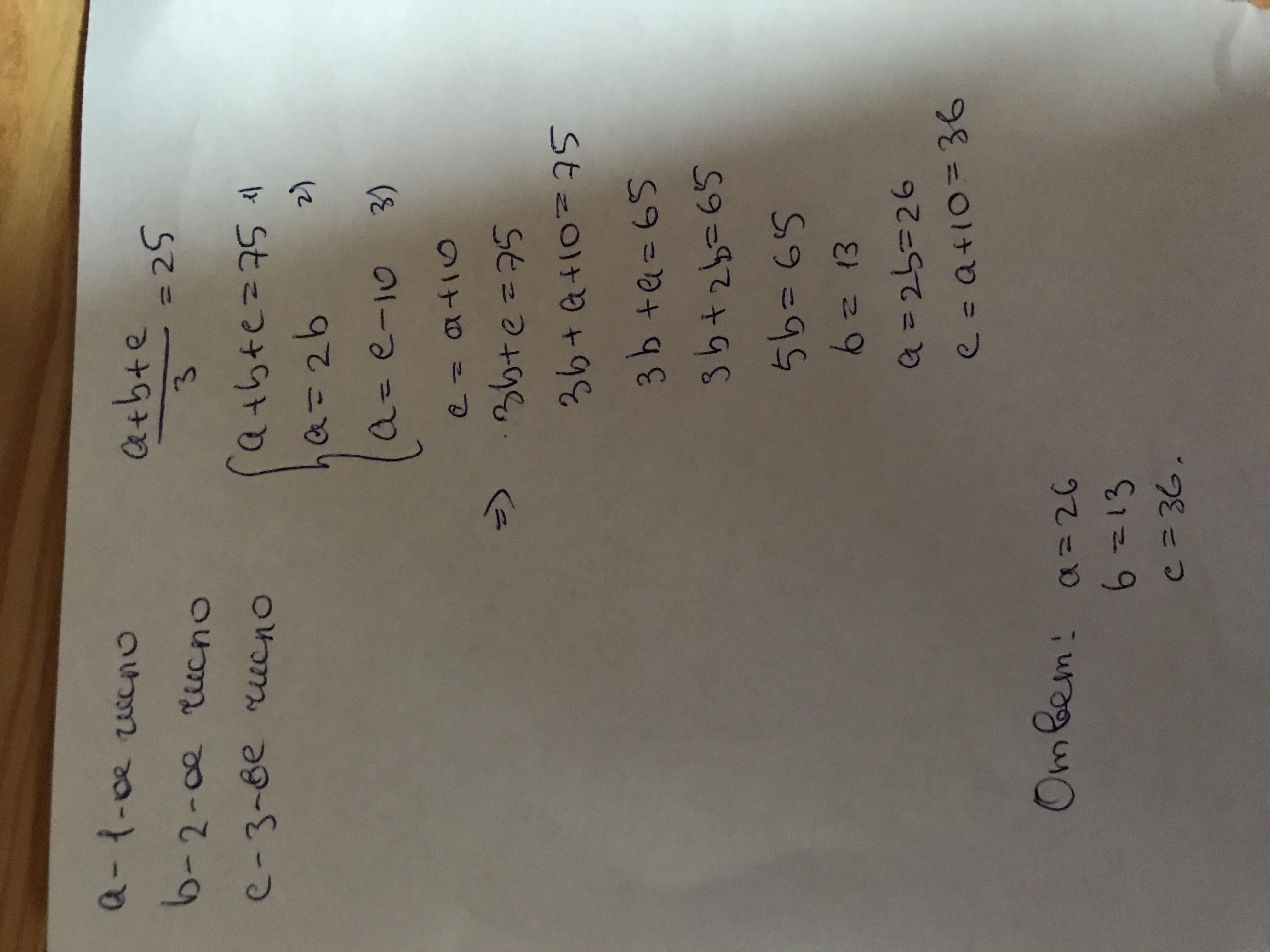 Среднее арифметическое трёх чисел 25. Первое больше второго в 2 раза и меньше третьего на 10 . Чему равно первое, второе и третье числа?