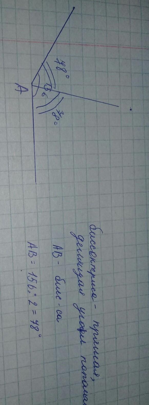 С помощью транспортира постройте угол равный 156° и проведите в нем биссектрису. АВ