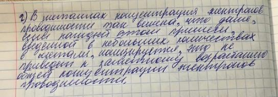 2) В металлах концентрация электронов проводимости так велика, что даже если (последний?) атом примеси, введенной в небольших количествах в металл, ионизируется, это не приводит к заметному возрастанию общей концентрации электронов проводимости