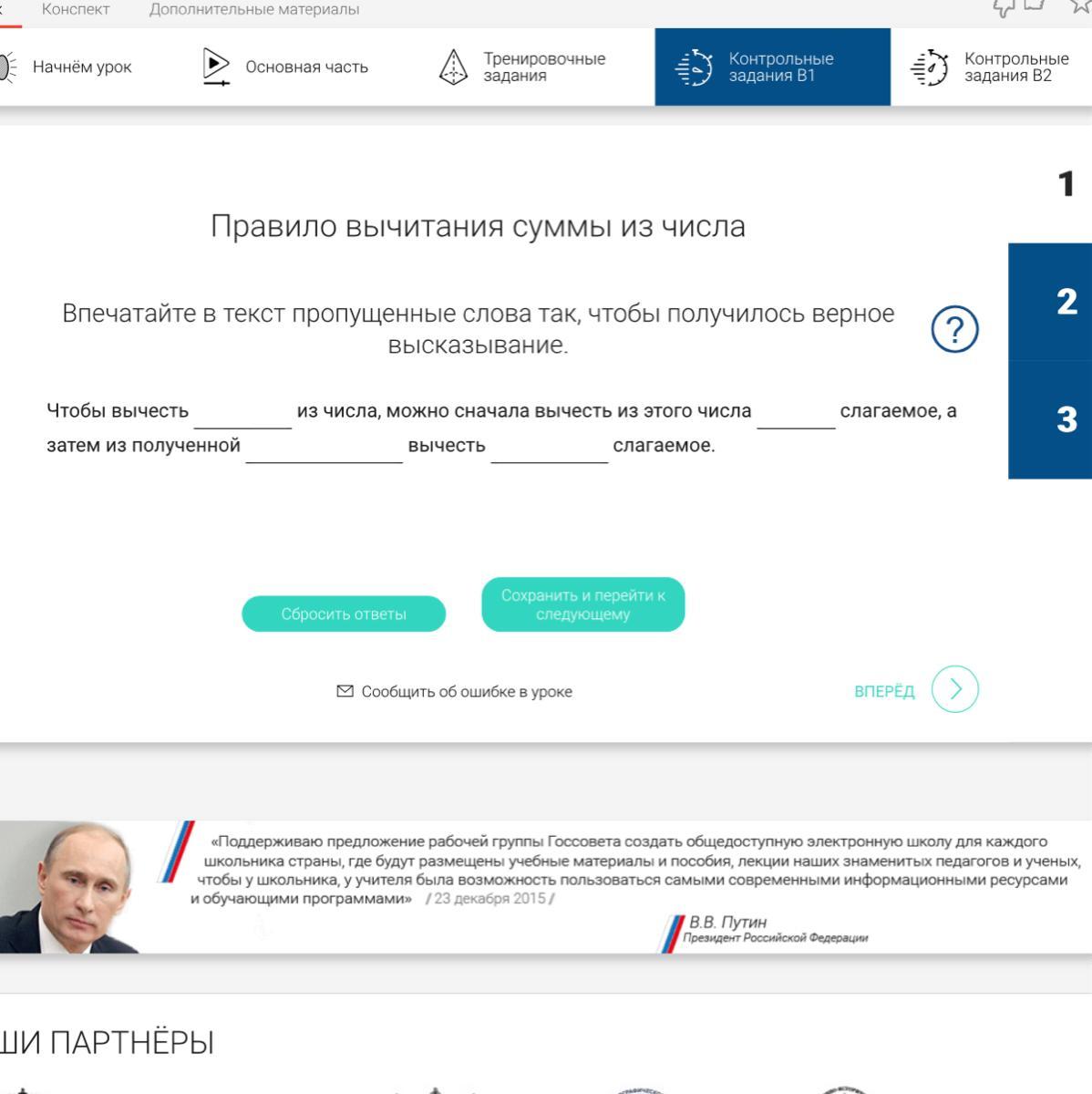 Чтобы вычесть сумму из числа, надо сначала вычесть из этого числа первое слагаемое, а затем из полученной разности вычесть второе слагаемое.