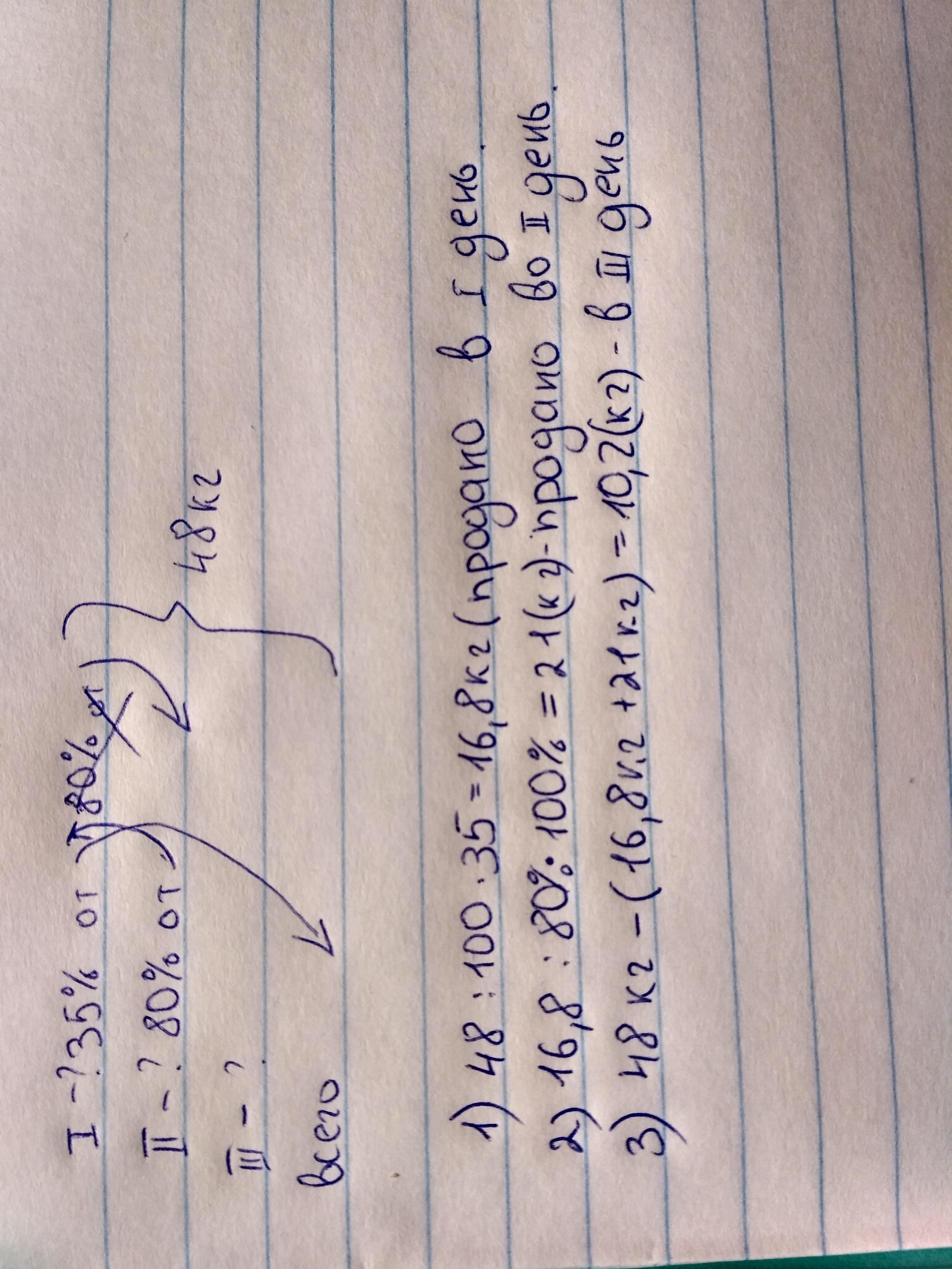 третий день = 48 - 16,8 - 21 = 10,2 кг