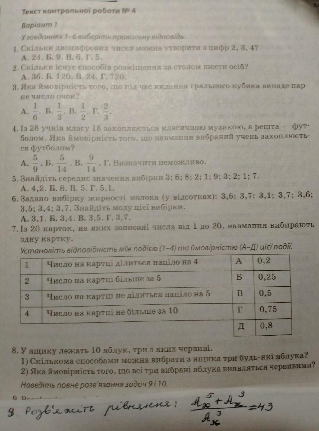 8)а)0,3 б)0,3*2/9*1/8=1/120