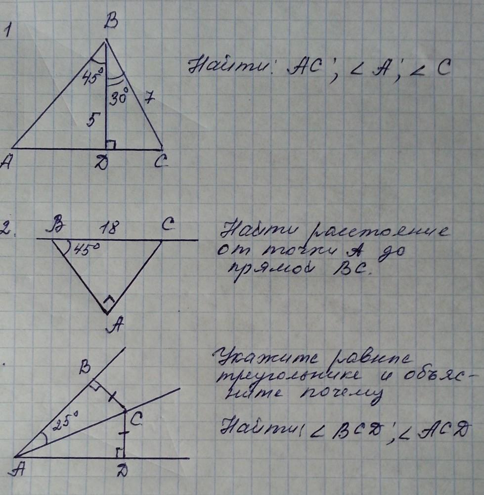 1)Рассмотрим треугольник АВД.Угол В равен 45°,угол Д равен 90°,соответственно угол А равен 45°,а если в треугольнике два угла одинаковы,то это равнобедренный треугольник,а у него боковые стороны равны,значит ВД=АД=5