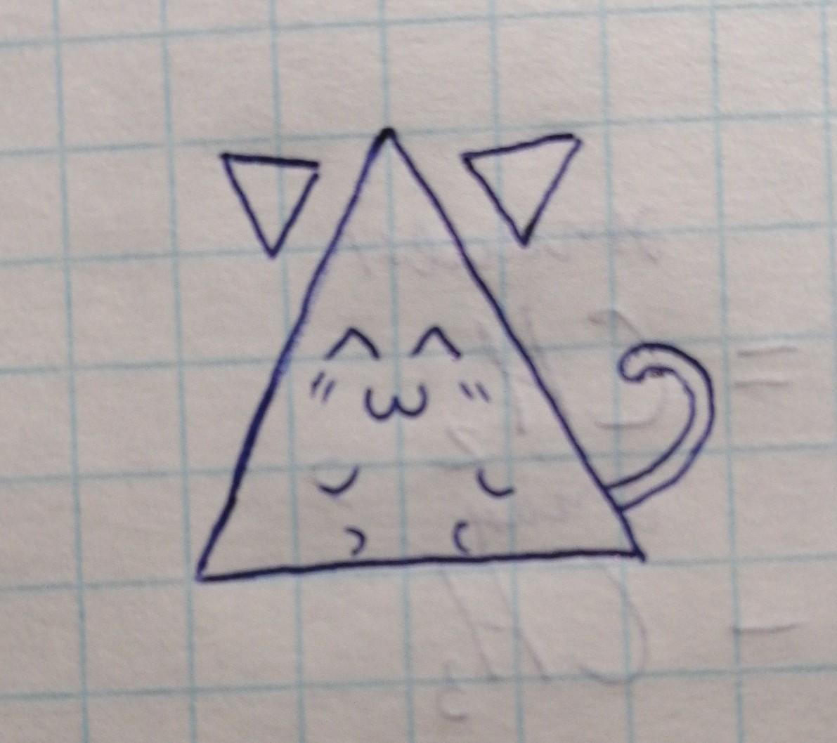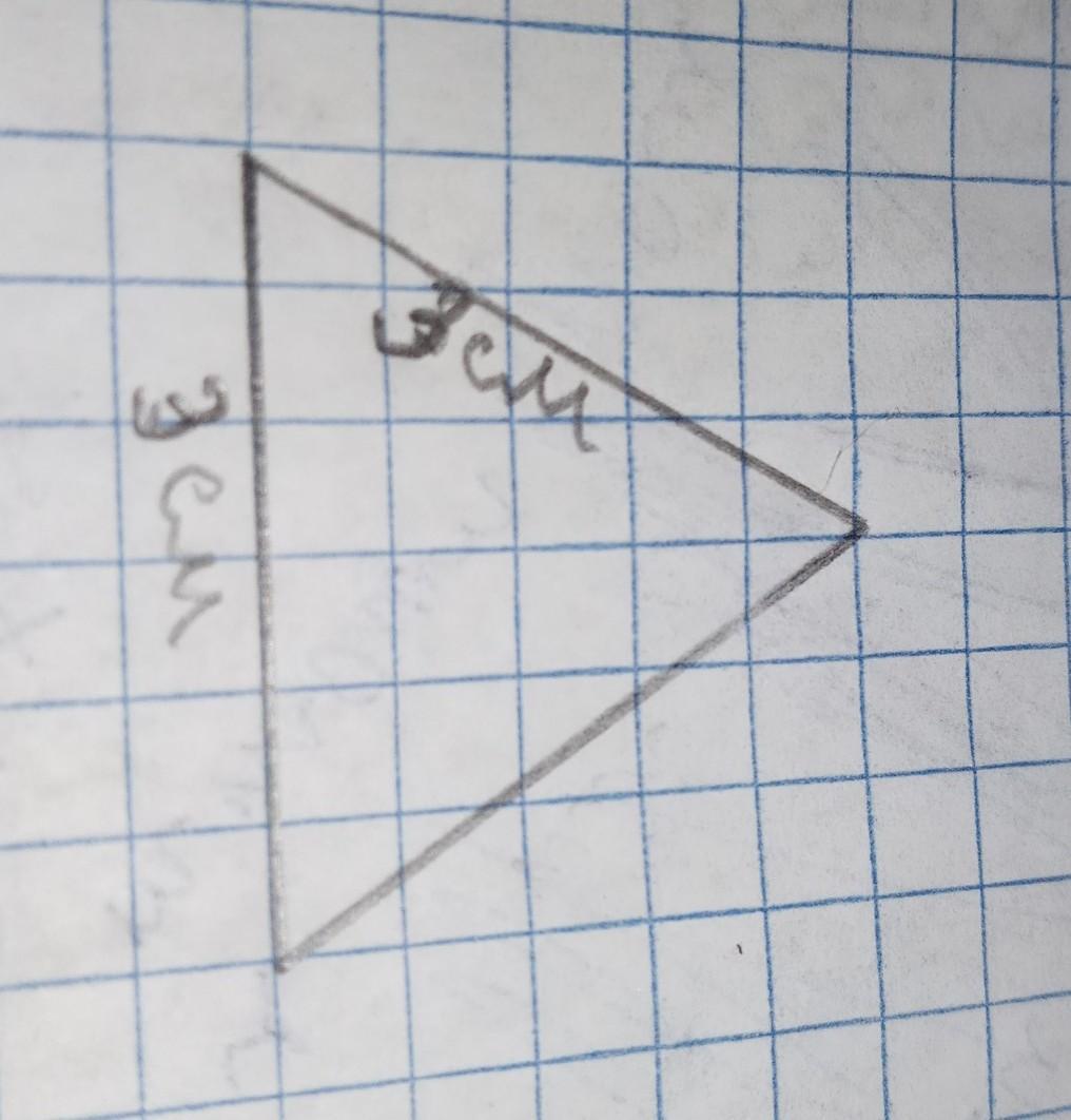 Условие интересное... Будем рассматривать самый большой треугольник. От верхней части треугольник-котика до правой нижней части 10 см. От правой нижней части до левой нижней части 7 см. От левой нижней части до верхней части 10 см. Равнобедренный треугольник-кот.