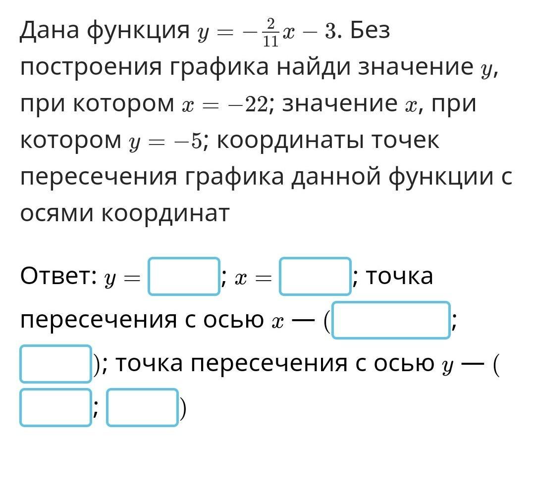 х=-22 у= -2/11*(-22)-3=4-3=1