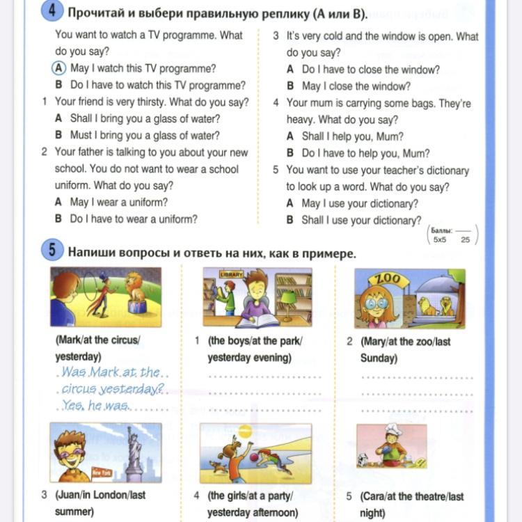 1-a, 2-b, 3-b, 4-a, 5-a. //// Were the boys at the park yesterday evening? No, they weren't. Was Mary at the zoo last Sunday? Yes, she was. Was Juan in London last summer? Yes, he was. Were the girls at a party yesterday afternoon? No, they weren't. Was Cara at the theatre last night? No, she wasn't.