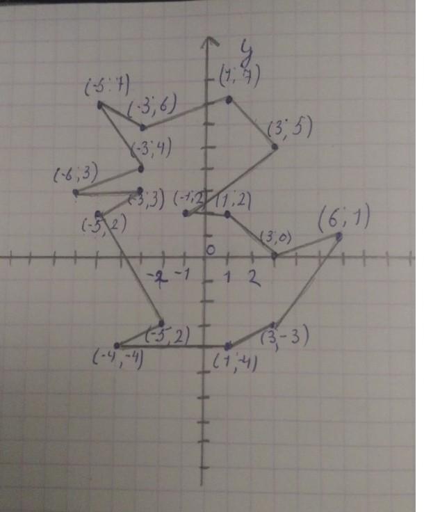нарисуйте пожалуйста легкий и небольшой рисунок по координатным точкам и еще напишите буквы с координатами прошуууу ток чтоб на фотке понятно было это срочно!!!
