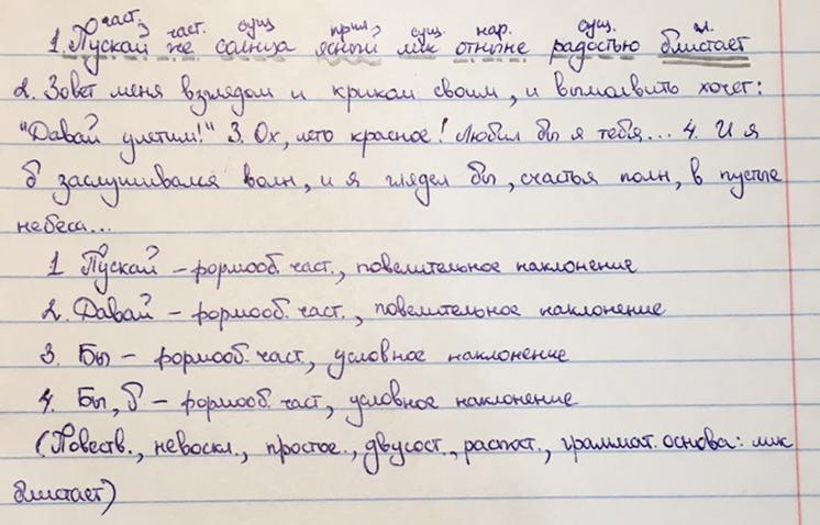 Cпишите. Вставьте пропущенные буквы, расставьте недостающие знаки препинания. Укажите формообразующие частицы. Подчеркните глагольные формы, которые образуются с помощью этих частиц. Произведите синтаксический разбор первого предложения.