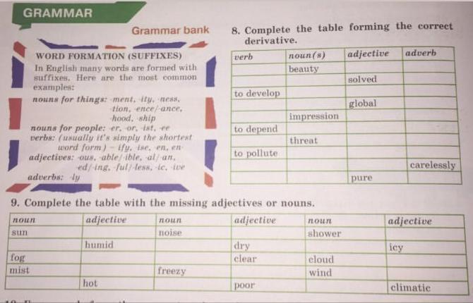 sunny, ?, foggy, misty, hot/ noisy, dry, clean, freez, poor/ shower, ice, cloudy, windy, climate