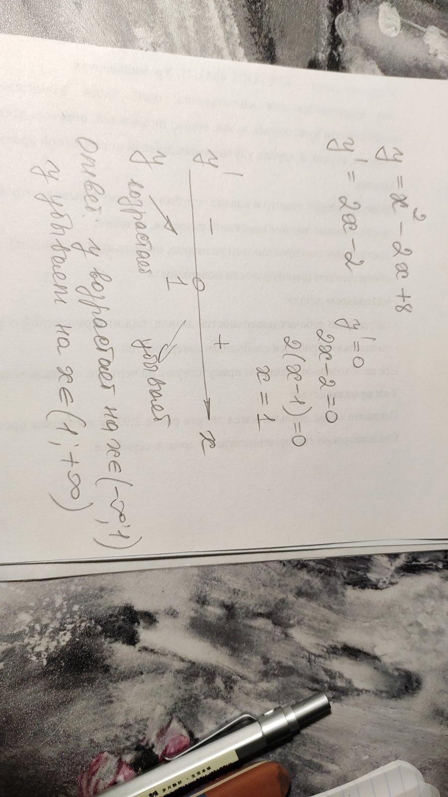 у возрастает на (-∞;1), убывает на (1;+∞)