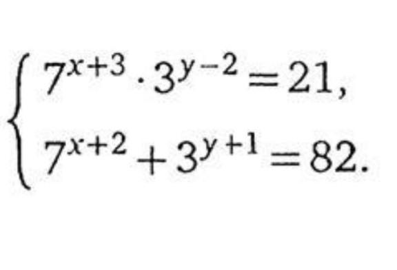 49*7^x+3*3^y=82 -2е уравнение и сделать замену, 7^x=a, 3^y=b