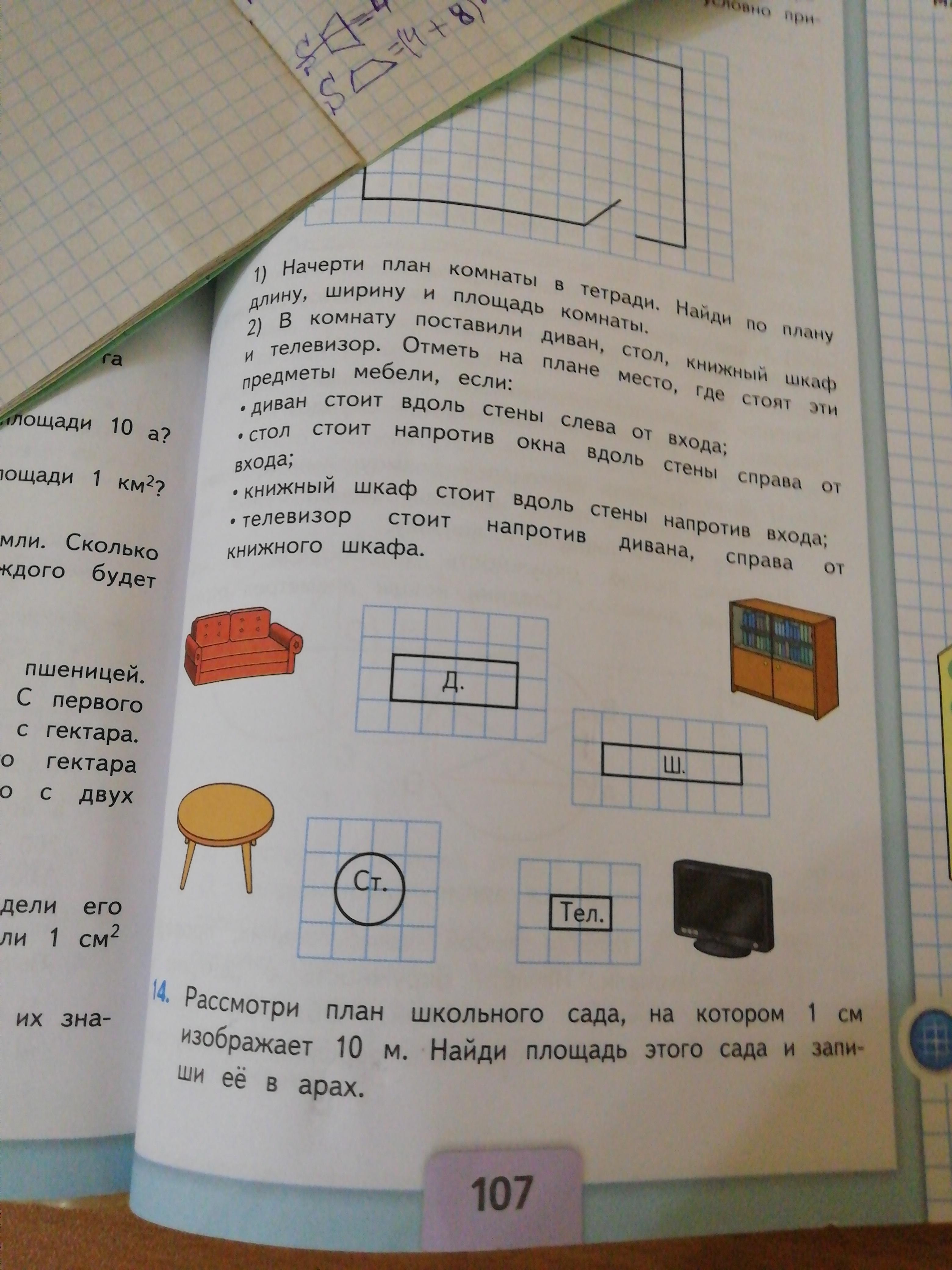 сад состоит из прямоугольника со стронами 4 см и 3 см, и