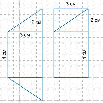 двух треугольников со стронами 3 см и 2 см (складываем эти два треугольника и получаем один прямоугольник со сторонами 3 см и 2 см)