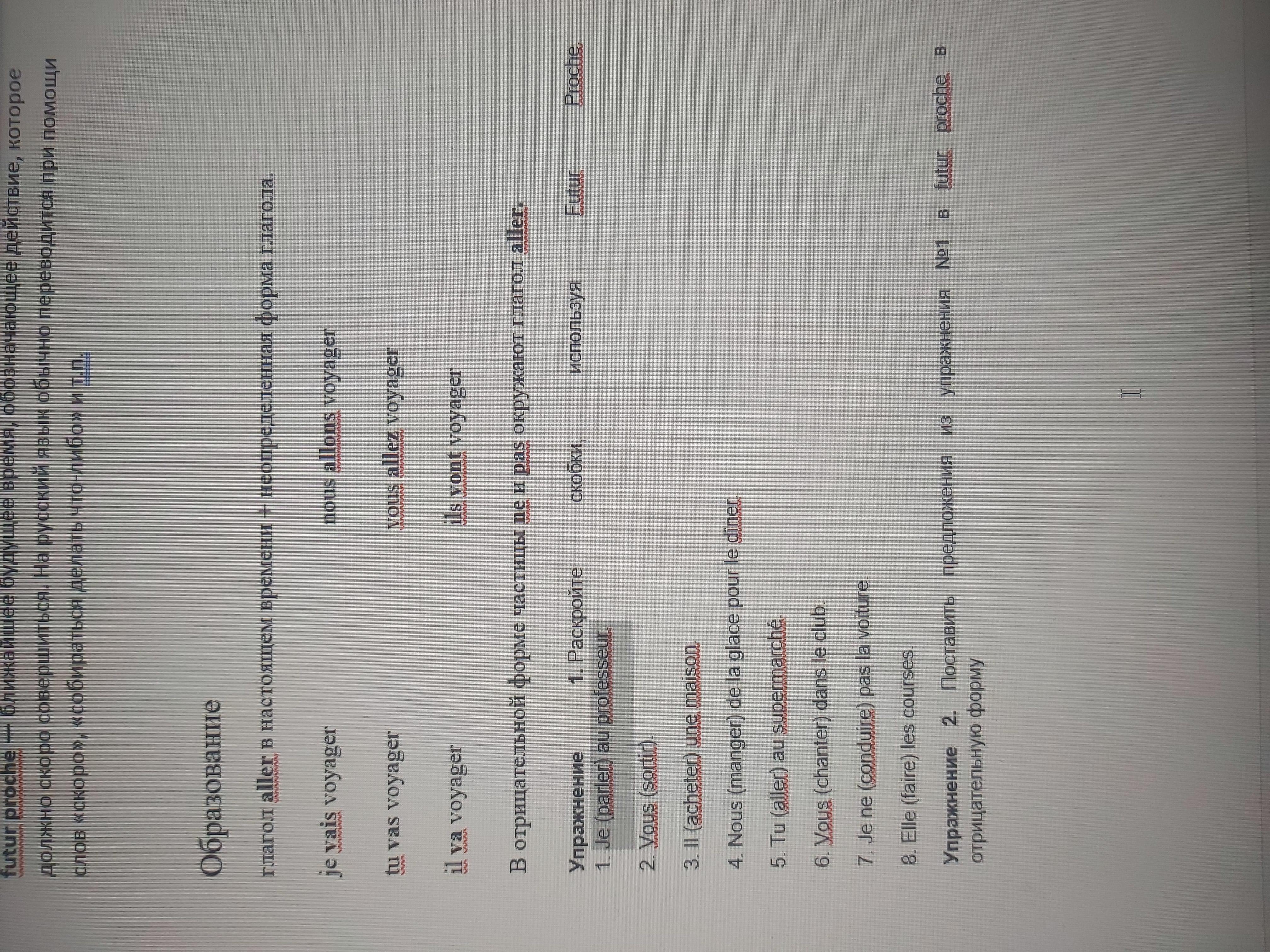 1. vais parler 2. allez sortir 3. va acheter 4. allons manger 5. vas aller 6. allez chanter 7. je ne vais pas conduire la voiture 8. va faire