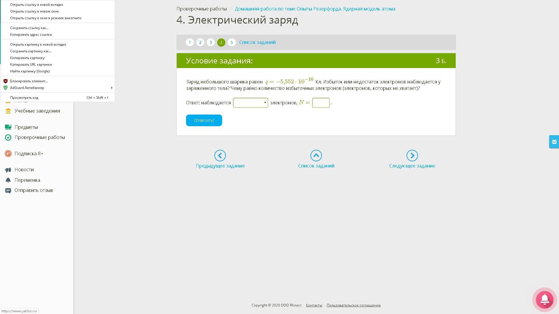 аряд небольшого шарика равен q=−5,552⋅10−16 Кл. Избыток или недостаток электронов наблюдается у заряженного тела? Чему равно количество избыточных электронов (электронов, которых не хватает)?