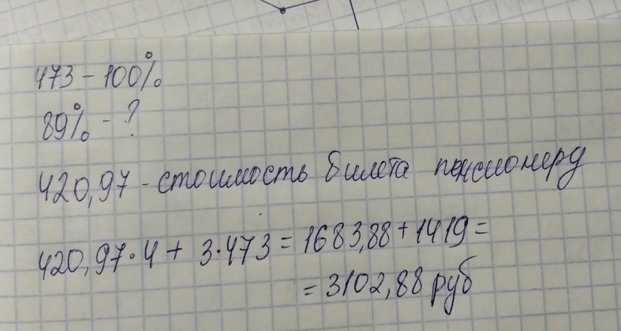 Стоимость билета в музей составляет 473 руб. Пенсионерам предоставляется скидка 11%. Определи, какую сумму потратит семья, состоящая из 4 пенсионеров и 3 человек не пенсионного возраста 5баллов