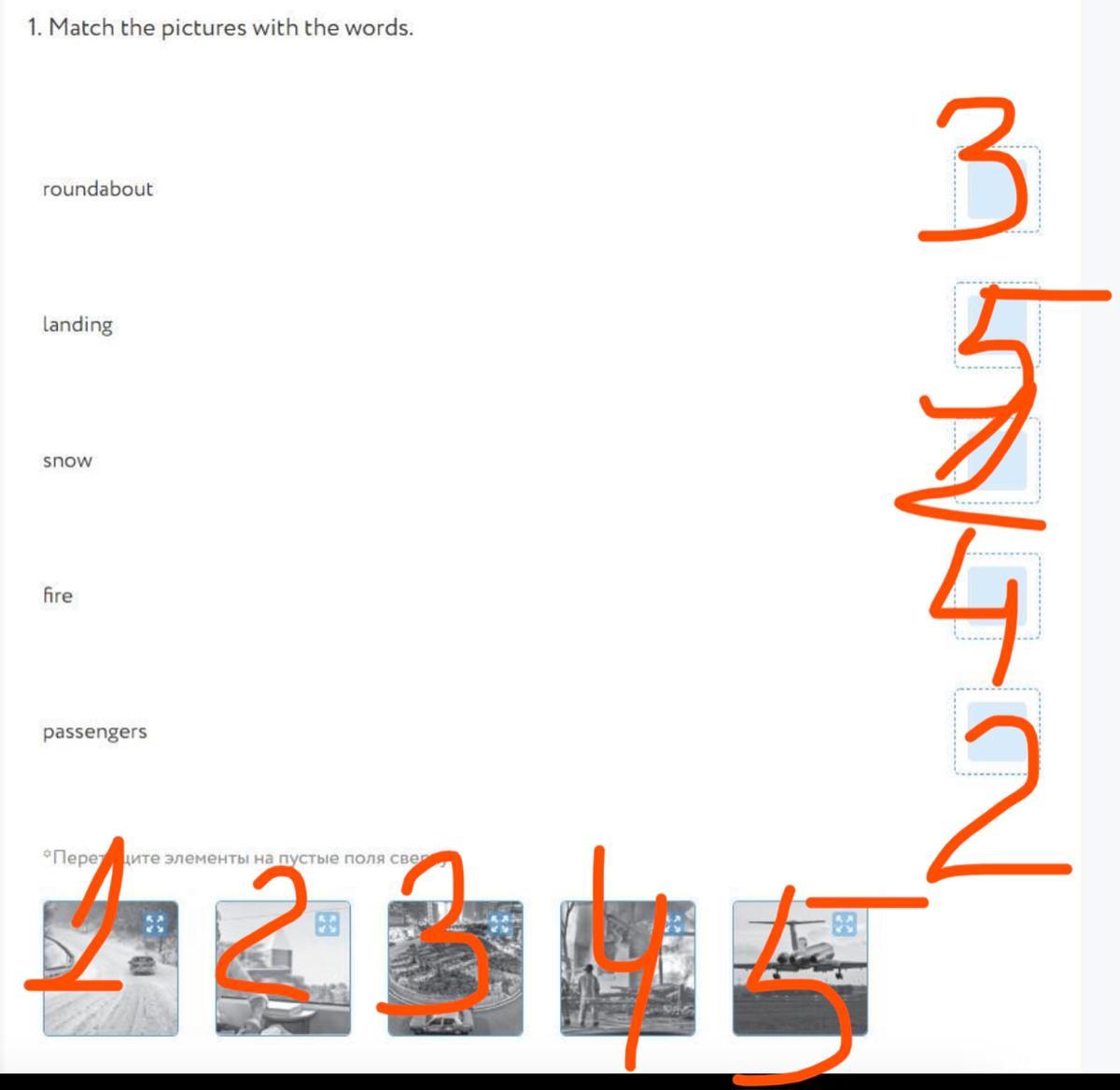 Ответ: roundabout - 3 картинка. landing - 5 картинка. snow - 1 картинка.