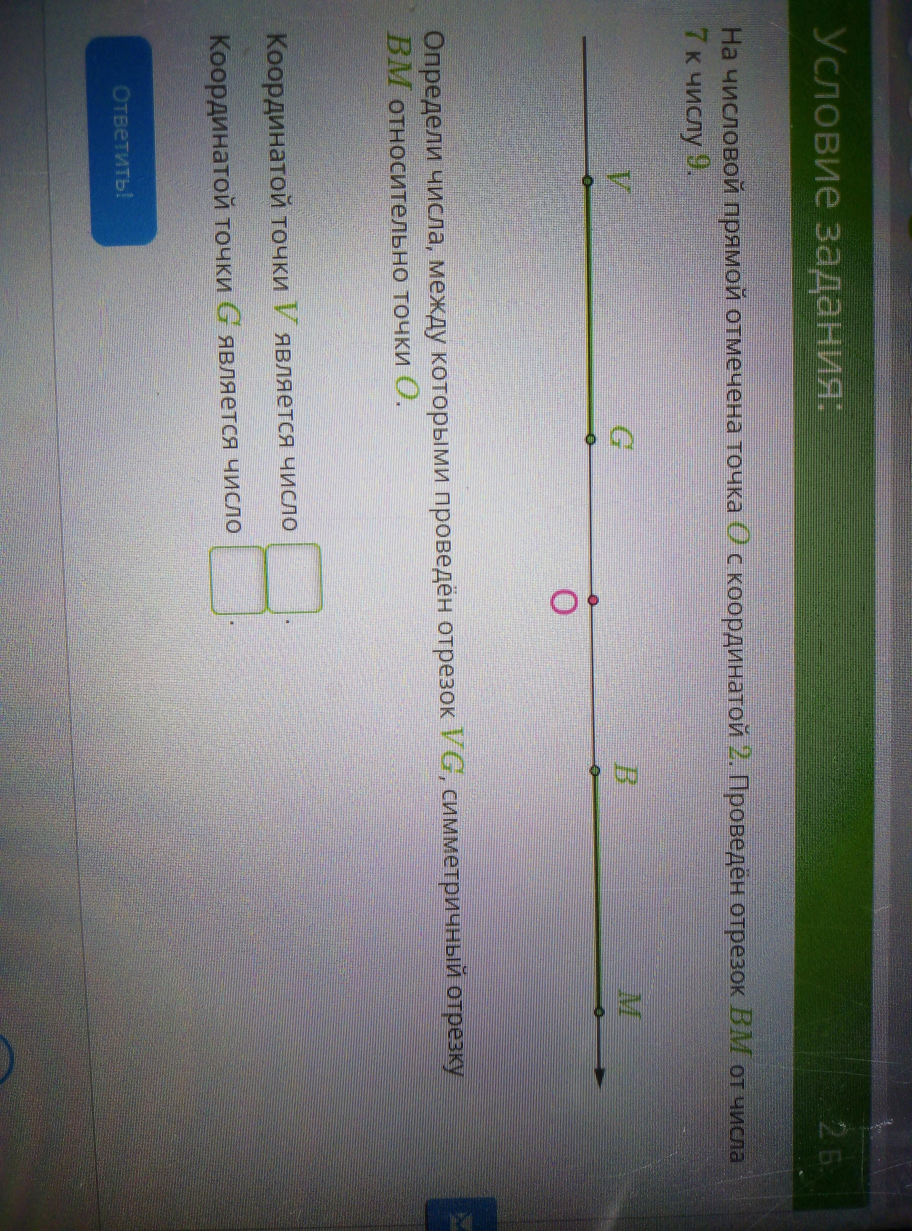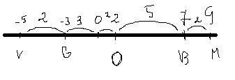 Поскольку отрезок VG расположен симметрично к BM, то между точками O и G будет 5 чисел и между точками V и G будет 2 числа