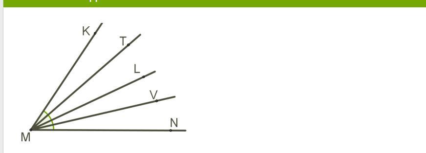 Луч ML является биссектрисой угла ∡KMN, луч MT — биссектрисой угла ∡KML, луч MV — биссектрисой угла ∡NML.