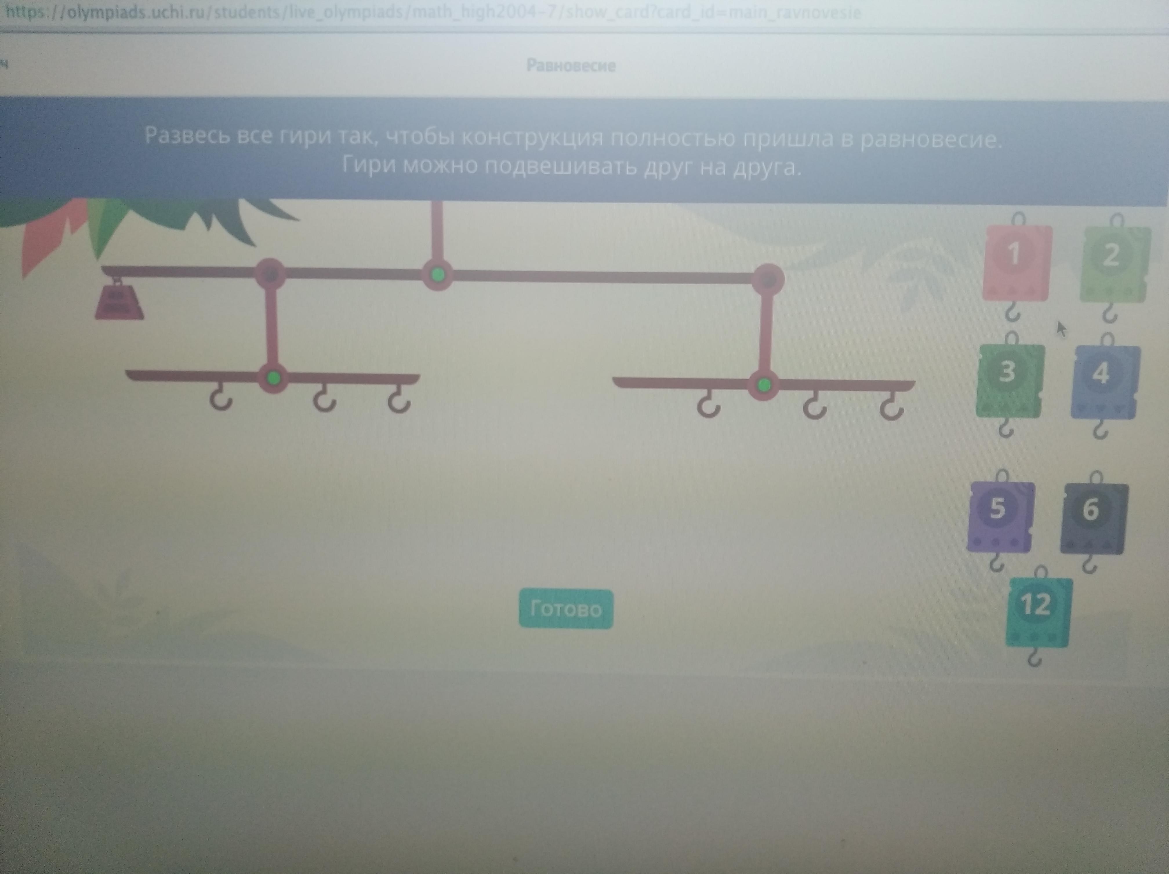 Помогите пожалуйста.... Развесь гири так,чтобы конструкция полностью пришла в равновесие.