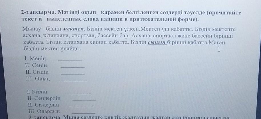 мәтінді оқып қарамен белгіленбен сөздерді тәуелде.