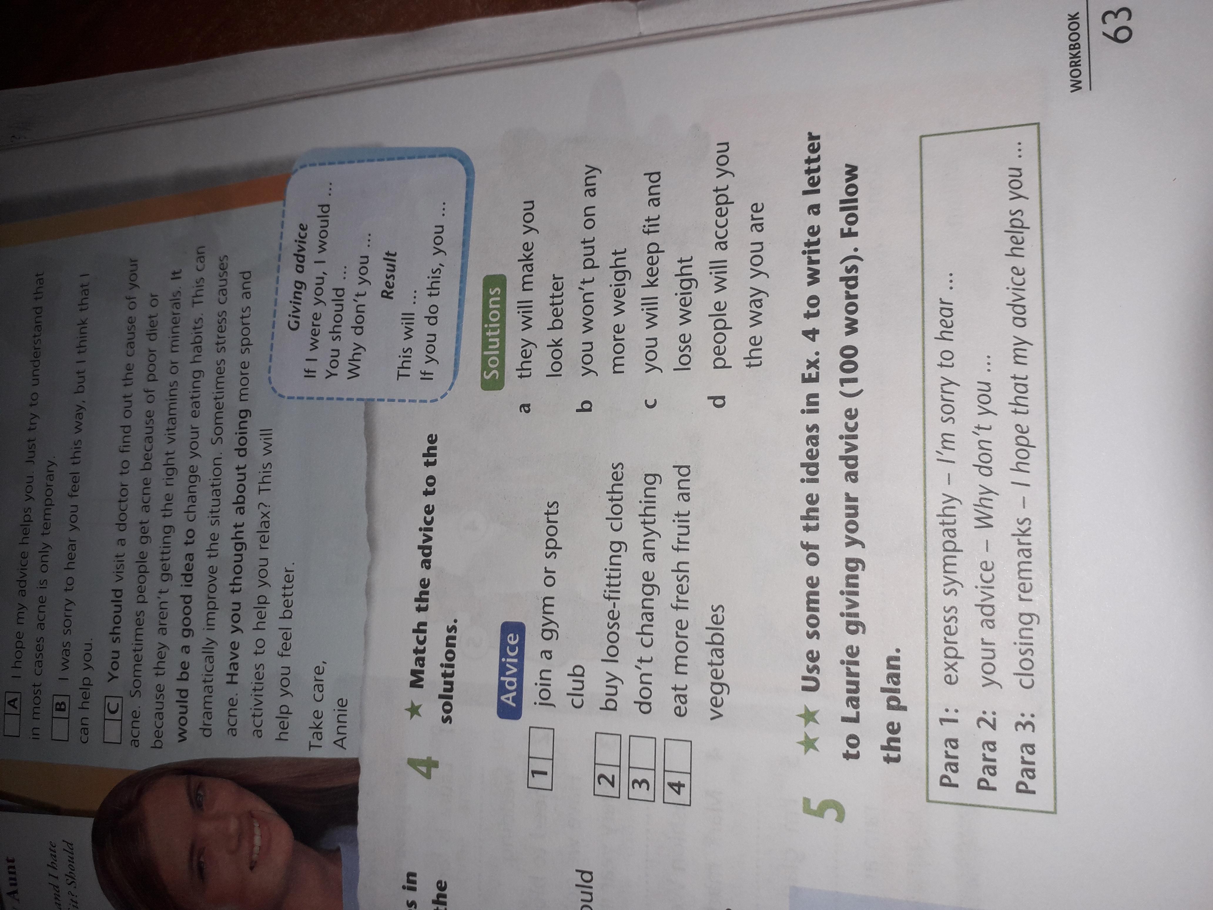 Use some of the ideas in Ex. 4 to write a letter to Laurie giving your advice (100 words). Follow the plan. ДАЮ 70 БАЛЛОВ!!!