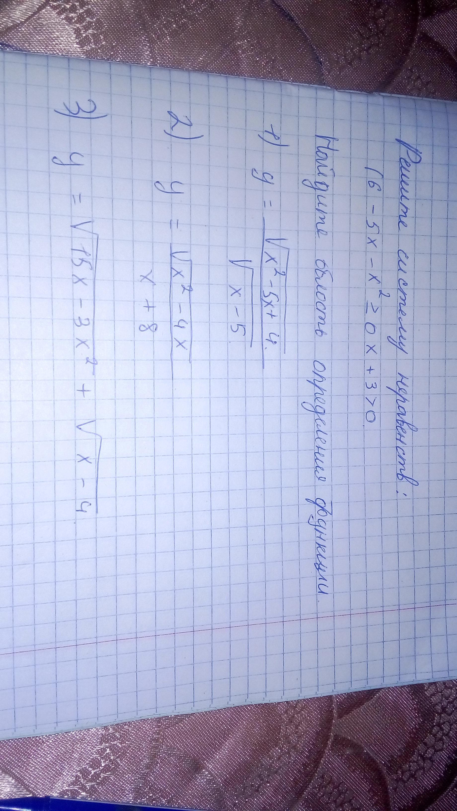 Задания с нахождением области определния функции я решил, а систему неравенст неотчетливо видно число возле икса, уточни какое там число и решу.