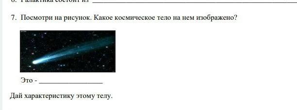 Комета — небольшое небесное тело, обращающееся вокруг Солнца по весьма вытянутой орбите в виде конического сечения. При приближении к Солнцу комета образует кому и иногда хвост из газа и пыли. Представляет из себя тело, состоящее из спрессованного льда, камня и металла.