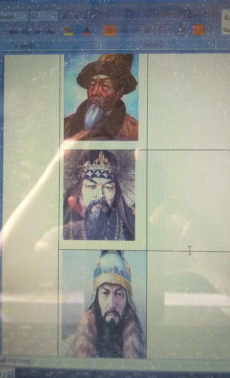 Назови (подпиши имена ханов)(1б).Напиши виде коротких (3 предложения)записей о каждом хане.Чем они запомнились в истории Казахстана?