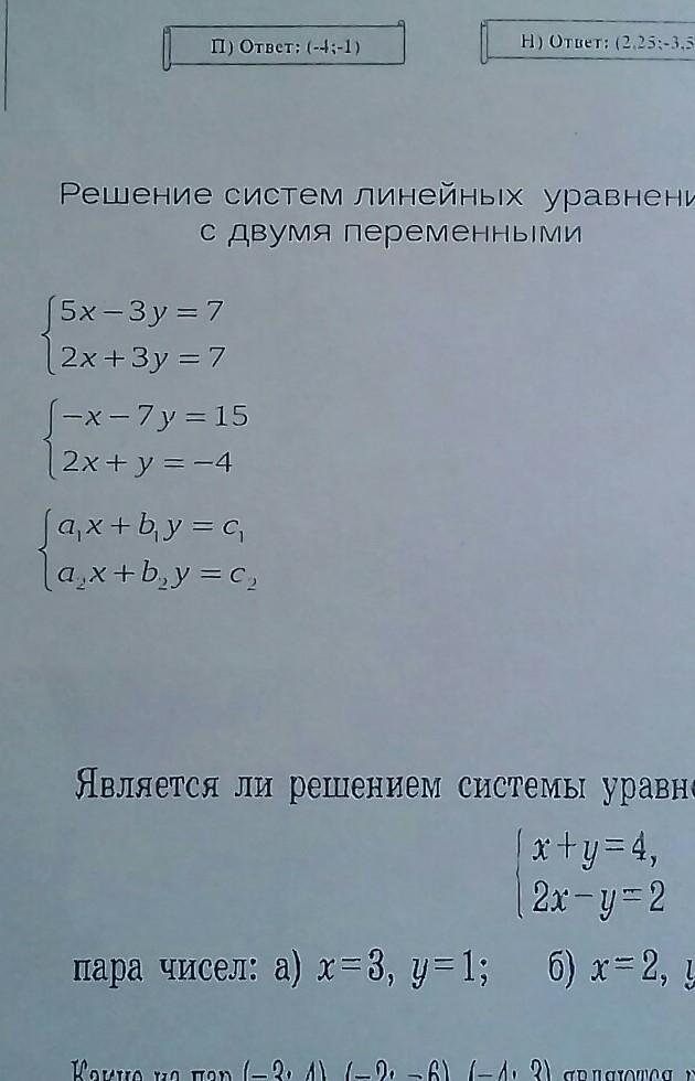 (5х+2х)+0=7+7, 7х=14, х=2, 5*2-3*у=7, у=1