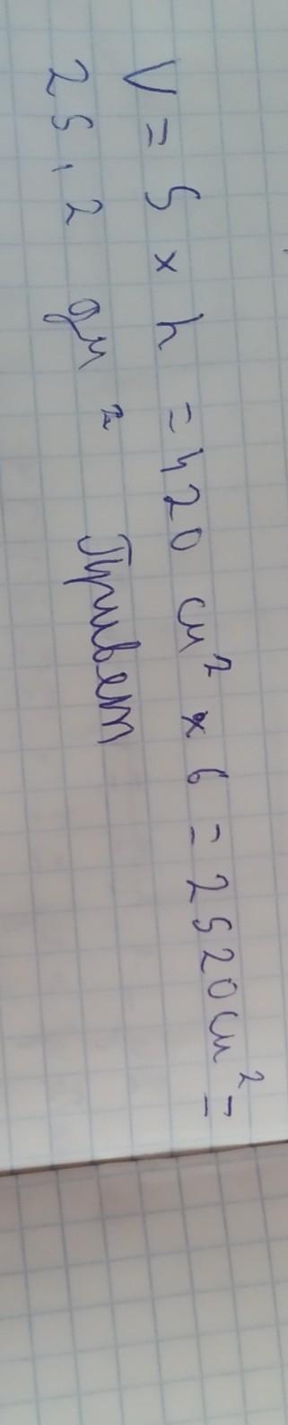Объем V=S*h=420см²*6см=2520см²=25.2дм²
