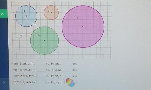 Найди длины диаметра и радиуса каждого круга. Не забудь обратить внимание на единицы измерения