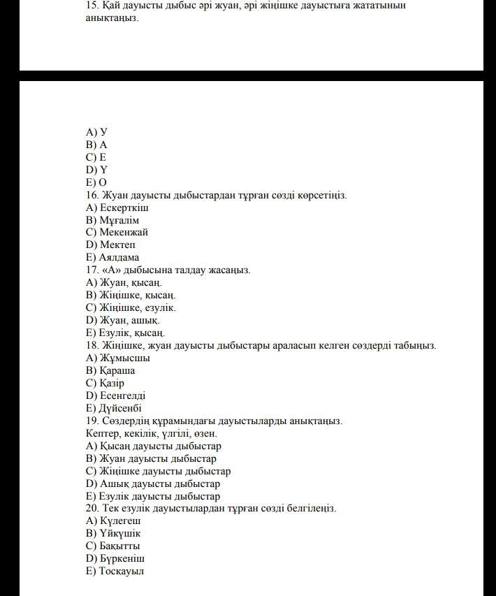8)а 9)а 11)д 12)д 13)е 1)е 2)в 3)с 4)а 5)е 6)в 7)д 15)а 16)в 17)д 18)с 20)с болды