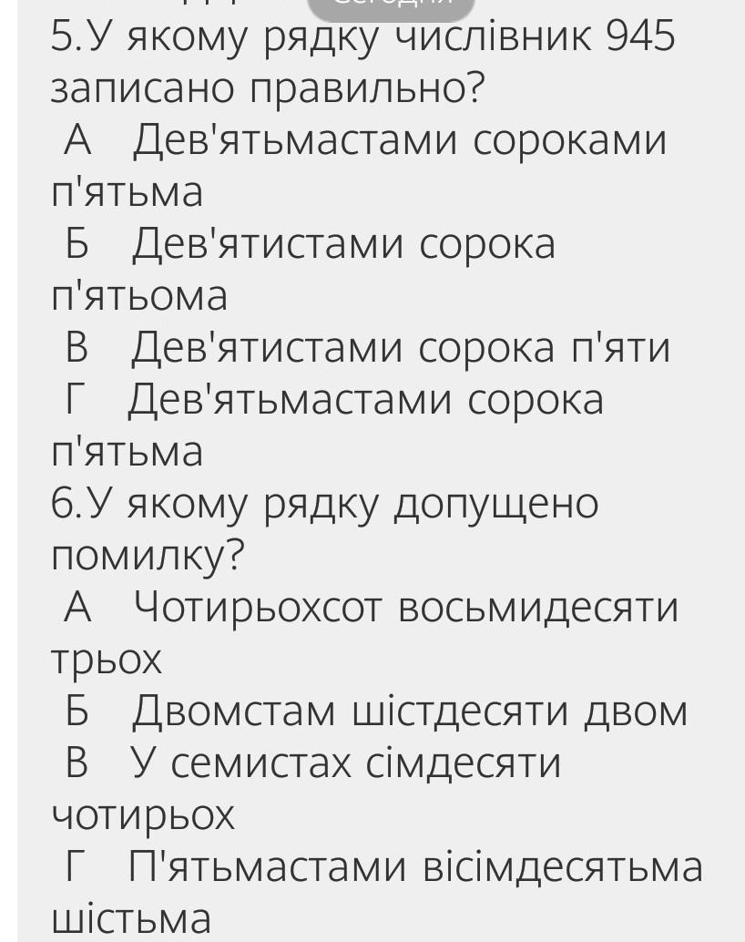 6. Помилка под буквой В: У семистах сiмдесяти чотирьох
