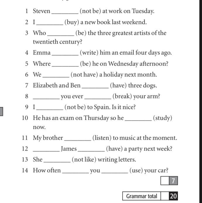 wasn’t,bought,was,wrote,was,won’t have,have,had,broken,haven’t been,