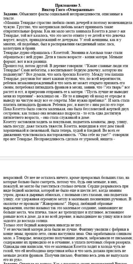 2) прочитай отрывок из романа В.Гюго (приложение 3) как отражена социальная несправедливость. Есть ли в современном мире примеры социальной несправедливости? Какие есть способы оказания помощи в этих случаях?