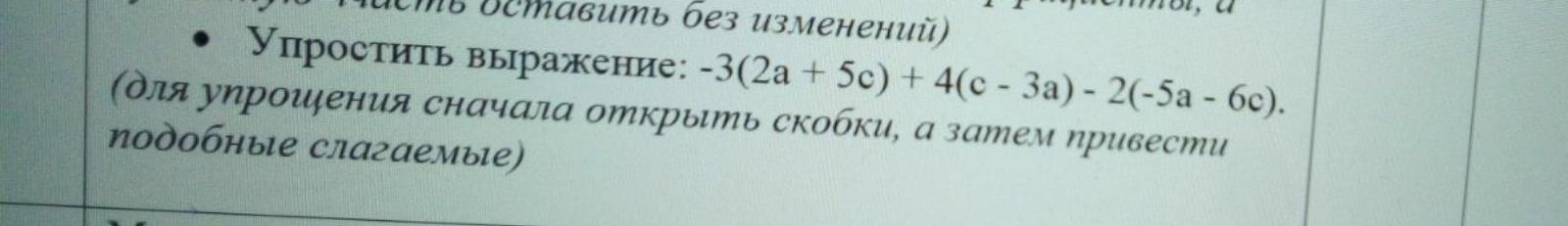 -3(2a+5c)+4(c-3a)-2(-5a-6c)