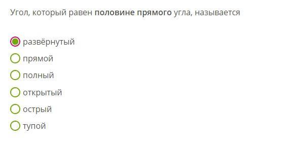 Развёрнутый 180, прямой 90 и половина прямого это острый 45