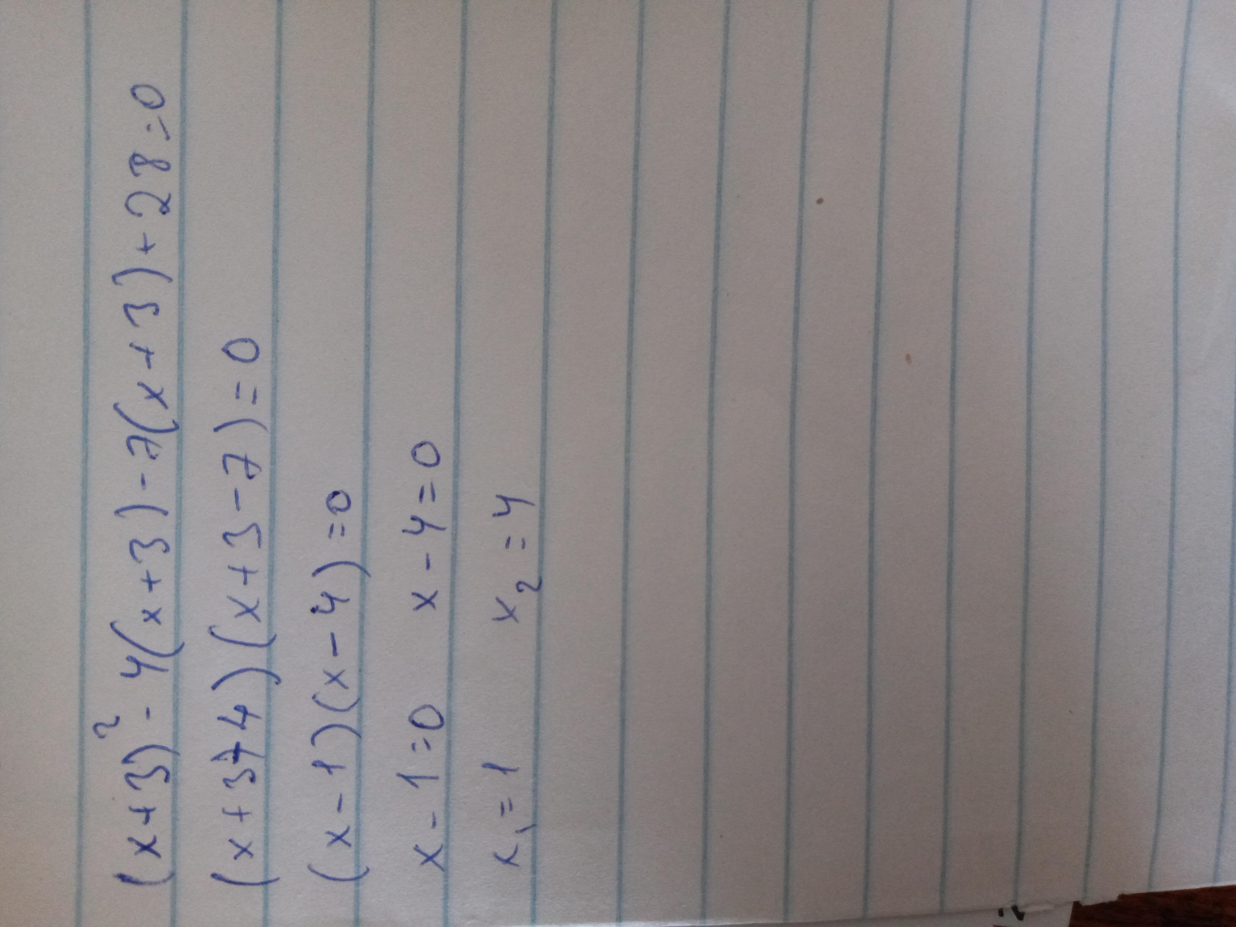 (х + 3)2(это квадрат) – 11(х + 3) + 28 = 0