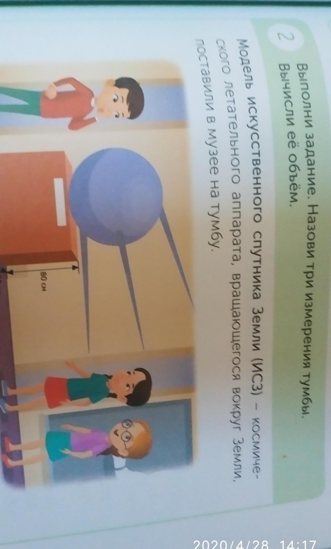 Выполни задание. Назови три измерения тумбы.