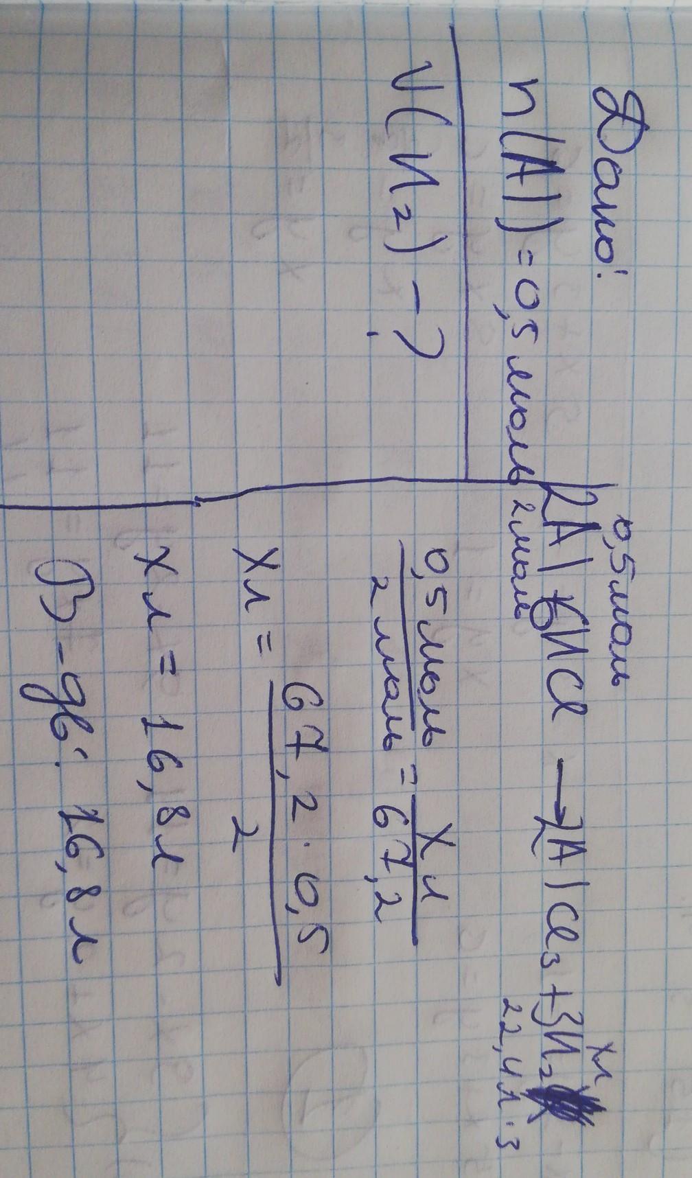 Який об’єм водню (н.у.)виділяється при взаємодії алюмінію кількістю речовини 0,5 моль із необхідною кількістю HCl?