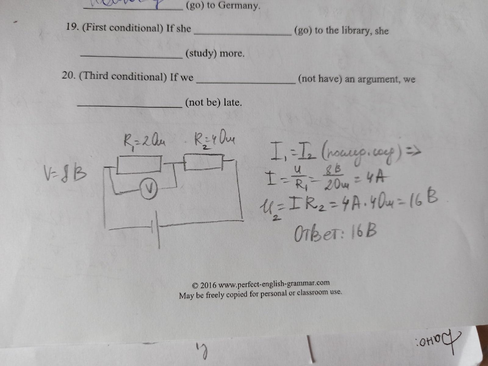 Два проводника сопротивлениями 2 Ом и 4 Ом соединены последовательно друг с другом. Напряжение на проводнике 2 Ом равно 8 В. Чему равно напряжение на втором проводнике? Нарисуйте схему.