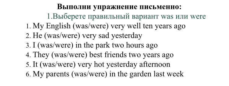 Ответ: 1- was, 2-was, 3-was, 4-were, 5-was, 6-were.